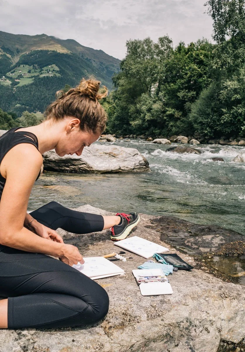 In einer Welt, die uns mehr nach außen zieht und von unserer Abstumpfung und Ablenkung profitiert, schaffe ich Kunst und Räume, um wieder lebendig zu werden. Durch das Erschaffen mit den eigenen Händen, durch Farben, durch das stille Gespräch, das entsteht, wenn der Pinsel auf das Papier trifft.